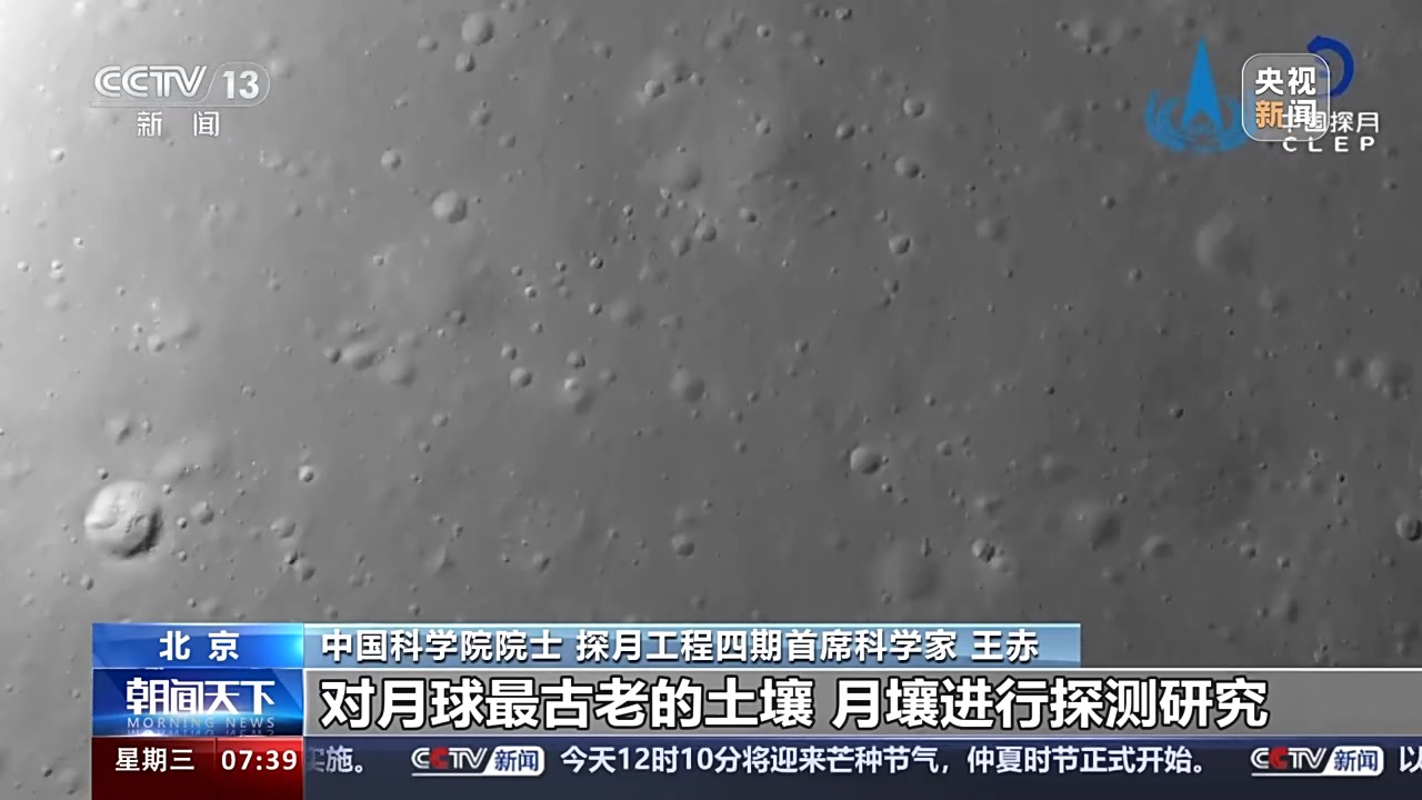 中国科学院院士、探月工程四期首席科学家王赤这次我们在月球背面,是月球表面最古老的盆地,这样我们能够对月球最古老的土壤、月壤进行探测研究,将会揭示月球形成的历史。