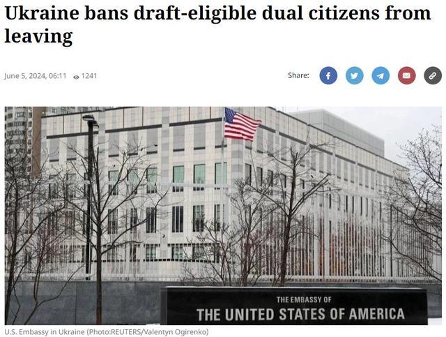 该公告警告称:“美国驻基辅大使馆获悉,自6月1日起,乌克兰取消了此前允许部分年龄在18岁至60岁之间的乌克兰男性离开该国的‘居住地在国外’豁免条款。在此次修改后,拥有美国和乌克兰双重国籍的人士,包括那些居住在美国的人,可能将无法再离开这个国家(指乌克兰)。”
