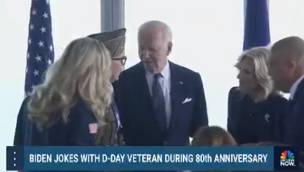 【环球网报道】当地时间6日,美国总统拜登和夫人吉尔·拜登前往法国科勒维尔美军公墓,参加诺曼底登陆80周年纪念活动。据美国全国广播公司(NBC)报道,当天活动上,一名诺曼底登陆老兵向拜登开玩笑提问,视频显示,听到问题后的拜登和“第一夫人”吉尔哈哈大笑。NBC称,虽然现场声音不太清楚,但这名老兵显然是问拜登说:“你什么时候睡觉?”