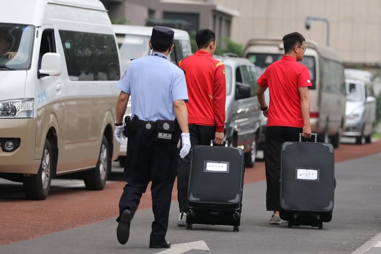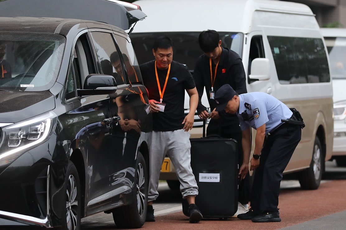 5时39分,第一辆考点的押卷车辆持高考专用通行证驶入考试中心。民警全程跟车护送,并陪同工作人员办理试卷交接手续。几分钟后,两名工作人员将装有高考试卷的黑色箱子装上车,车辆随即驶离考试中心。