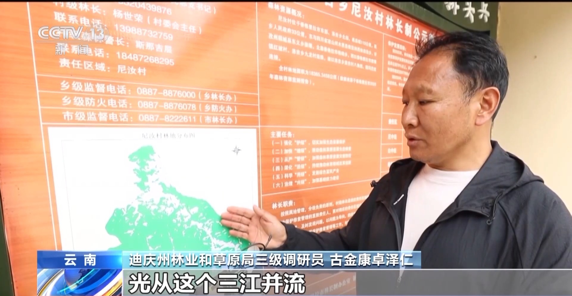 云南迪庆州林业和草原局三级调研员 古金康卓泽仁:光从三江并流申报世界自遗产的范围里面看,整个尼汝的这个区域就酷似一个人的心脏,把它形容为这个三江并流世界自然遗产的腹心地,是名副其实的。比较好的地质奇观、地质遗迹、生物群落的分布,在本次香格里拉国家公园的创建过程当中,我们尼汝的这个分量也是非常重。