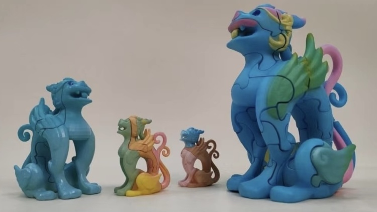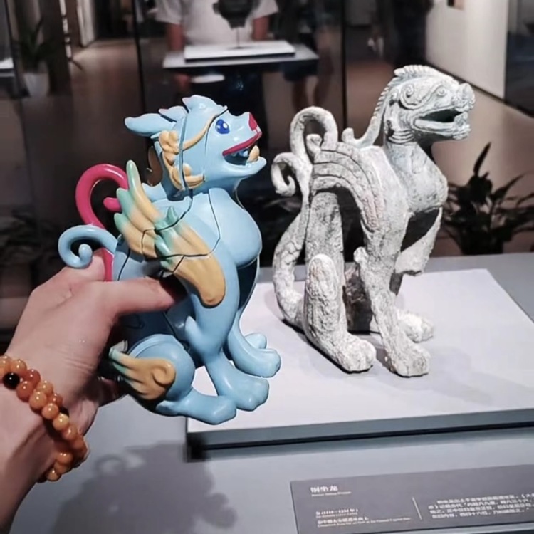 明信片、冰箱贴都是“常规操作”,北京印刷学院的铜坐龙文创小组突破性地把榫卯结构用在了文创铜坐龙身上,分别开发出了由3块、6块、31块文化元素构成的铜坐龙装配潮玩和亲子启智产品。每块积木的拼接处,都有历史文化的“知识点”:建都870年、金人游牧、幽州、蓟城……博物馆中庄严肃穆的龙,就这样“飞入寻常百姓家”,“讲述”它亲历的历史。