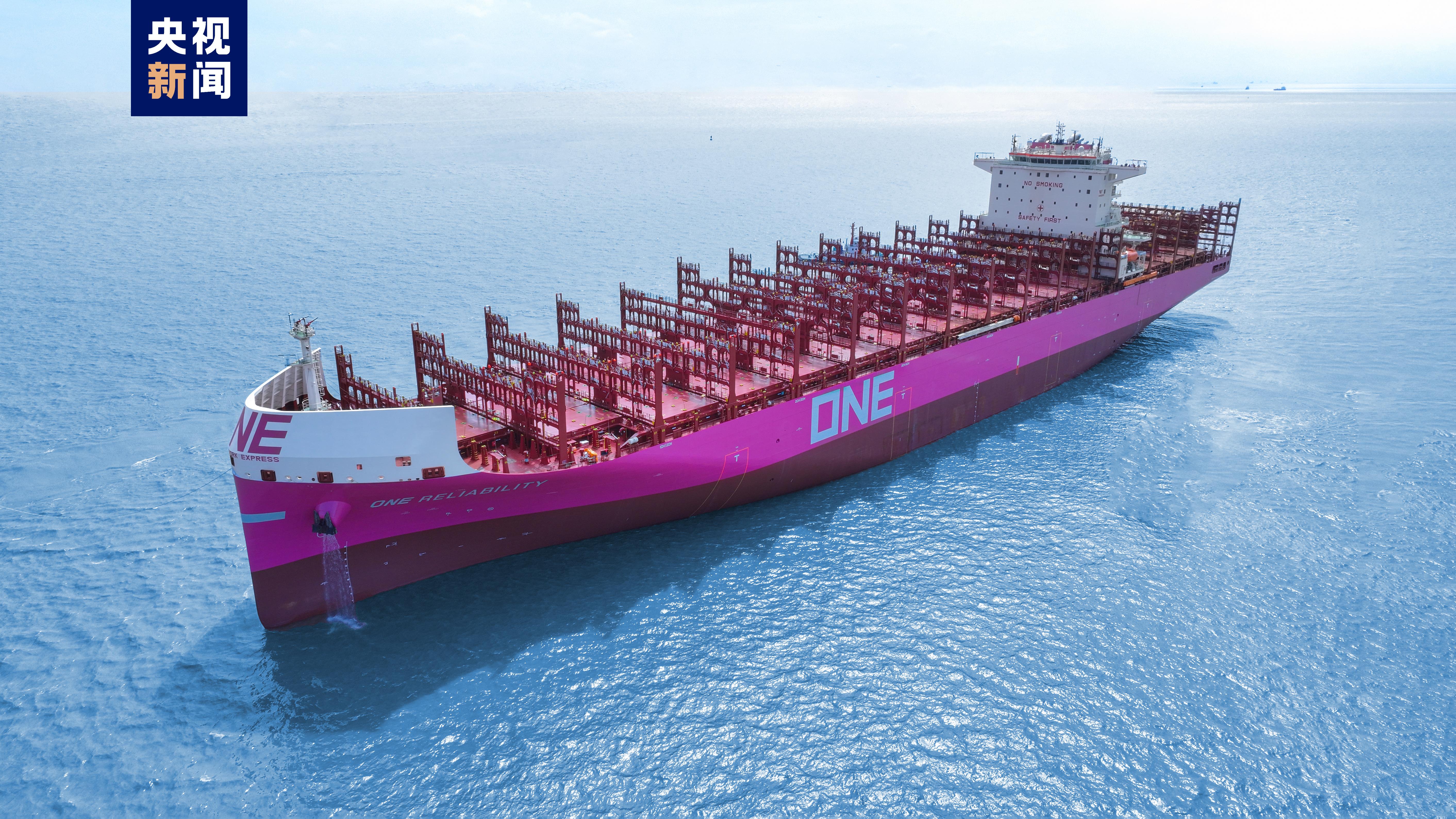 中国船舶外高桥造船生产总监 李芝忠:这两条船的性能比较先进,可以跑远航,也可以跑近海干线、支线都能跑,对船东来讲就是比较灵活。这个船绿色环保的指标都是非常优秀的。