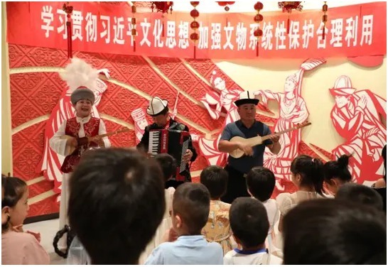 新疆维吾尔自治区博物馆推出扎染DIY手工制作、龙舟手工制作活动;新疆维吾尔自治区昌吉回族自治州推出“对话文物,感受历史”——剪纸研学活动;伊犁州开展传统文化亲子游园会社教研学系列活动(拓片、剪纸、刺绣等)。新疆维吾尔自治区巴音郭楞蒙古自治州推出“博物馆里读中国——弘扬中华优秀传统文化、培育社会主义核心价值观”主题社教活动。通过将文化遗产与研学活动相结合,使各族青少年在活动过程中产生共鸣、增进认同感,教育引导他们透过中华优秀传统文化,增强“五个认同”,有形有感有效铸牢中华民族共同体意识。