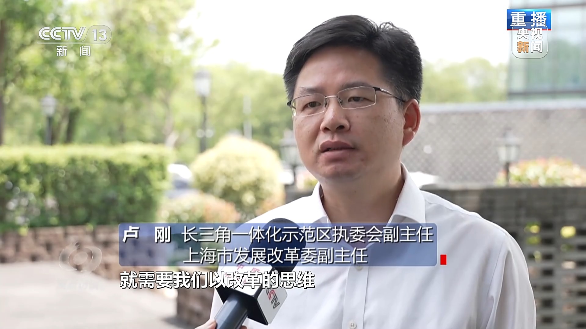 长三角一体化示范区执委会生态和规划建设部副部长 刘群星:在这里设立长三角一体化的示范区,就是要推动区域协调发展,打造一块一体化制度创新试验田。在试验田里鼓励大家一起试、一起闯,有些制度还要改。有了这样的鼓励我们的工作才有了更多的底气和更强的动力,才有了后来方厅水院的落地。