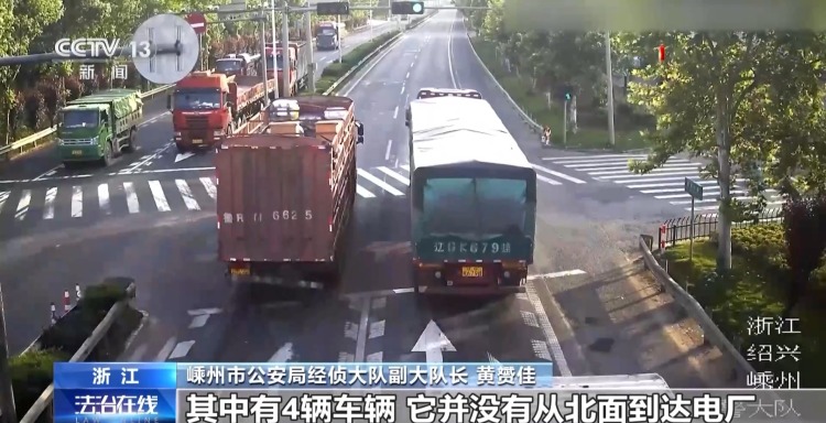 嵊州市公安局经侦大队副大队长 黄赟佳:其中有4辆车辆并没有从北面到达电厂,而是从嵊州东边的高速口下高速,然后再往回走。我们认为这个行为不但增加了路程,而且从北面到东面又会增加10元钱的高速费,这是非常反常的。