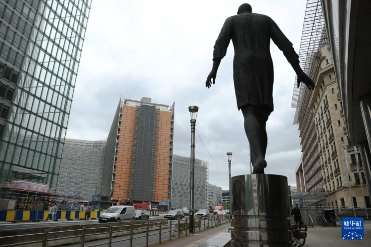 2024年6月3日,在比利时布鲁塞尔,车辆驶过欧盟委员会大楼。新华社记者 赵丁喆 摄
