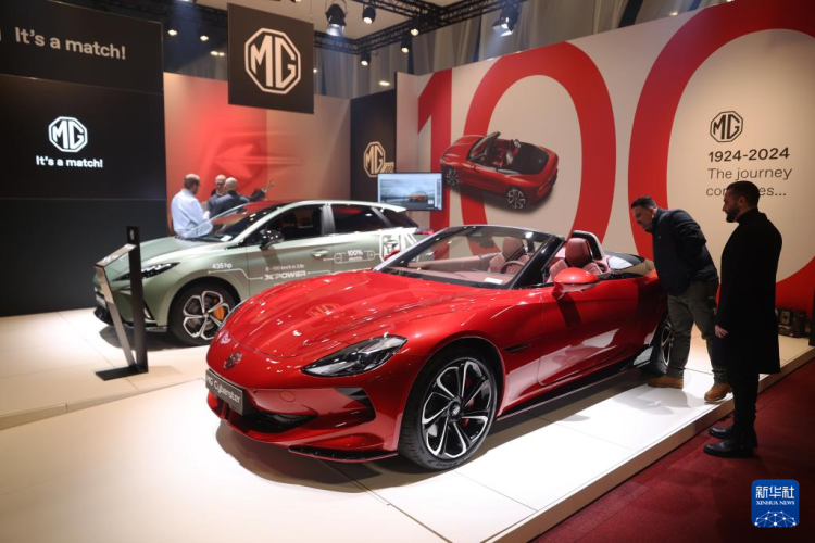 2024年1月17日,人们在比利时布鲁塞尔举办的2024布鲁塞尔汽车展上参观上汽名爵电动汽车。新华社记者 赵丁喆 摄