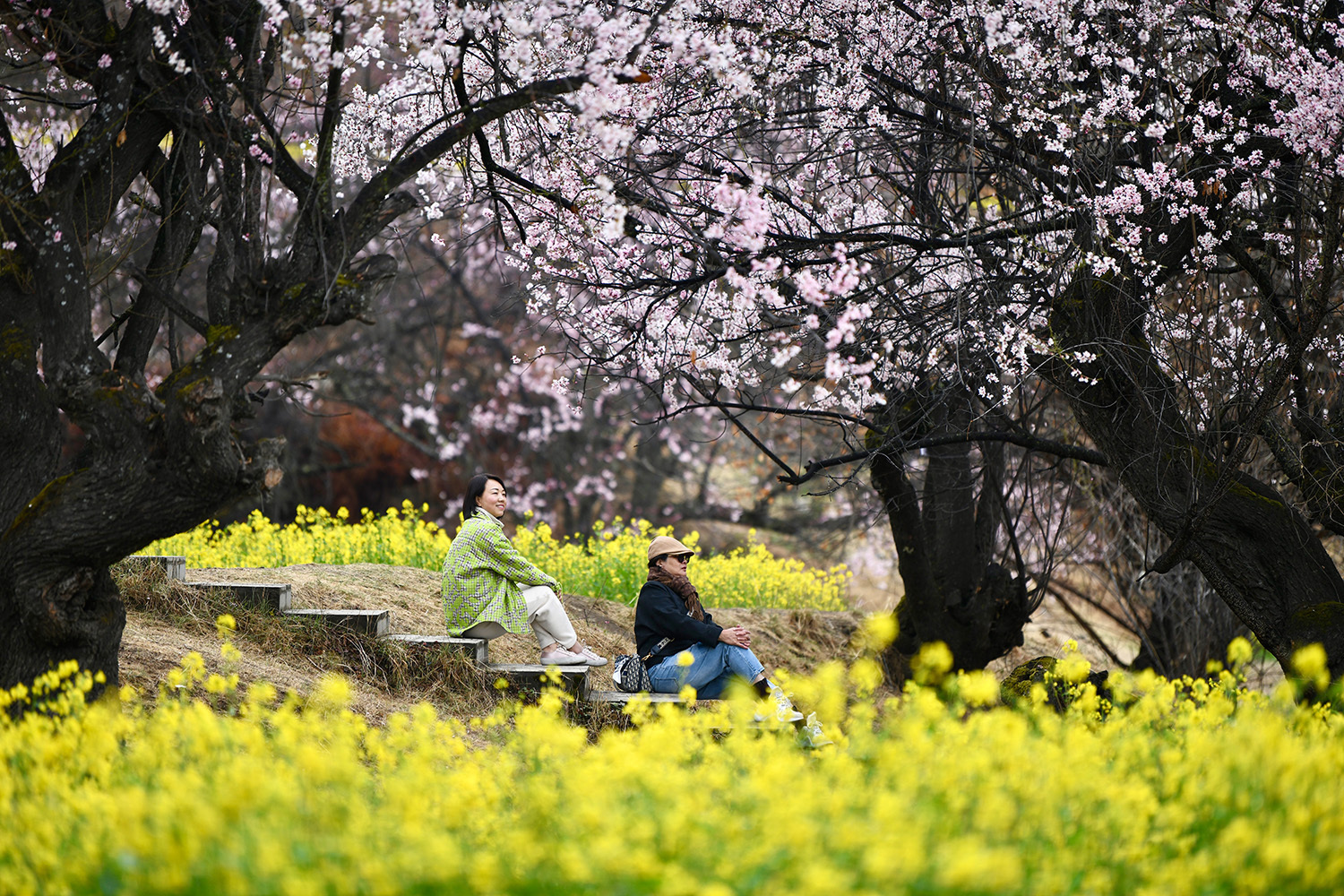三月的林芝,桃花流水窅然去,别有天地非人间。走进嘎拉村,阵阵花香扑鼻而来,粉色的桃花与金黄的油菜花相映成趣,灼灼芳华,美得醉人。记者看到,村民们围着桃树、桃花忙碌着,有人为花间迷向的游客指路,有人穿梭花海为游客牵马。不少游客在景区换上心仪的藏装,穿梭于花海,留下靓丽的身影。