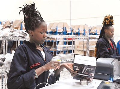 在肯尼亚姆洛隆戈,Kilimall员工在海外仓内工作。新华社记者 李亚辉摄