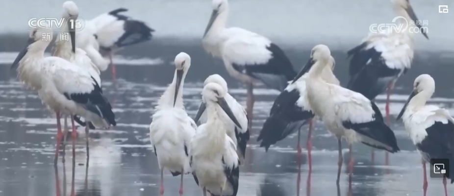 在位于湖南省郴州市的舂陵国家湿地公园,工作人员近日在开展鸟类监测时,捕捉到4位特殊的“客人”,它们是被称为“鸟中国宝”的国家一级重点保护野生动物东方白鹳、黑鹳。