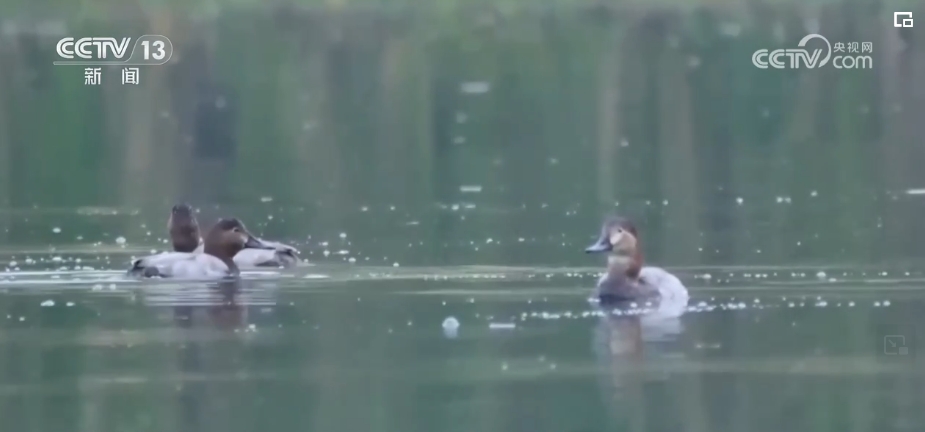 据了解,江西鄱阳湖国家级自然保护区管理局九江站监测到的成年青头潜鸭数量已经达到了90余只,创历史新高。