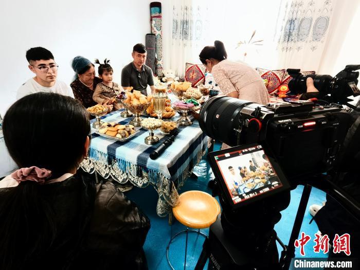 摄制组走进新疆吉木乃县万驼园产业园区职工家庭拍摄。古丽米娜·艾力哈孜 摄