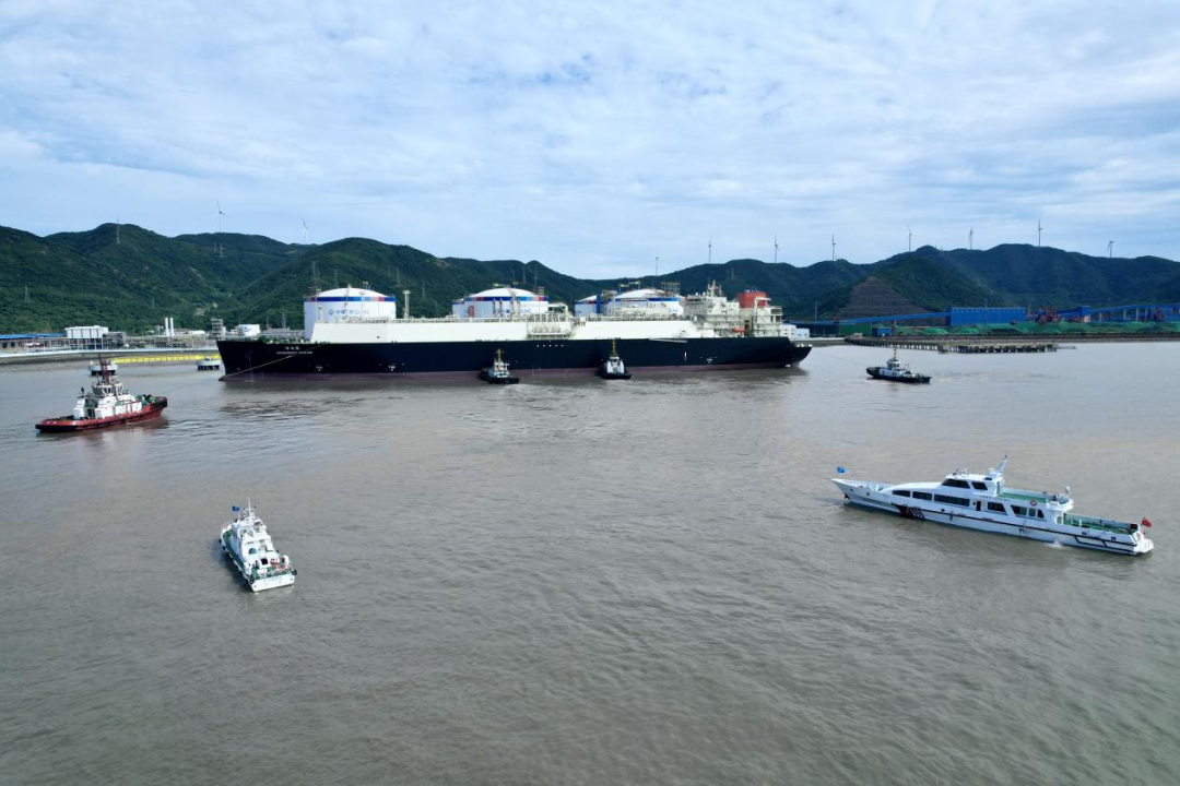 近日,在中国海油宁波“绿能港”LNG接收站,我国迄今为止最大规模LNG运输船建造工程——中国海油中长期FOB资源配套LNG运输船项目的首制船“绿能瀛”号在0718海巡艇的护航下顺利抵达宁波“绿能港”,计划在港完成冷舱作业及返输后开启首航。