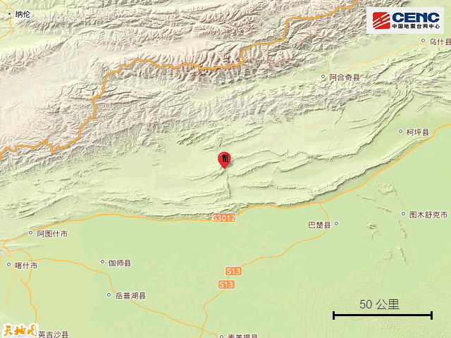 速报参数: 据中国地震台网正式测定,6月20日19时36分在新疆克孜勒苏州阿图什市发生4.8级地震,震源深度10公里,震中位于北纬40.21度,东经77.68度。