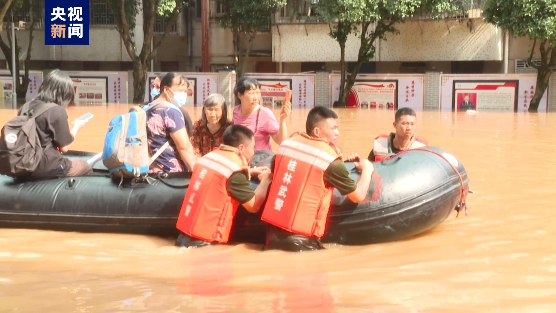 6月20日8时,接到情况通报后,武警广西总队桂林支队官兵携带冲锋舟、皮划艇、救生衣、救援绳等救援装备,第一时间赶赴灾区,担负转移群众、运送物资等任务。