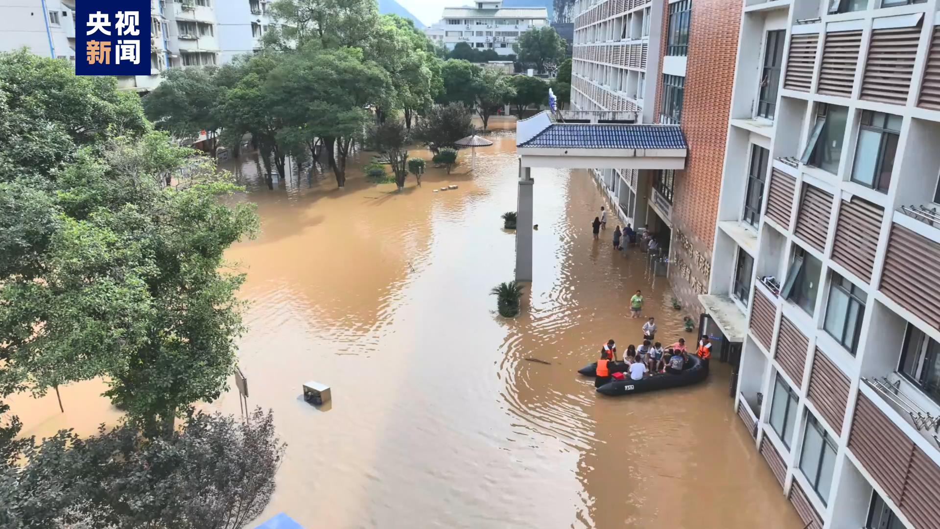 在南溪山医院,由于院内内涝严重,道路被堵,供电中断,医患缺乏物资,情况十分紧急。现场指挥员一边组织官兵警戒疏散围观群众,一边派出官兵驾驶皮划艇,展开救援任务。
