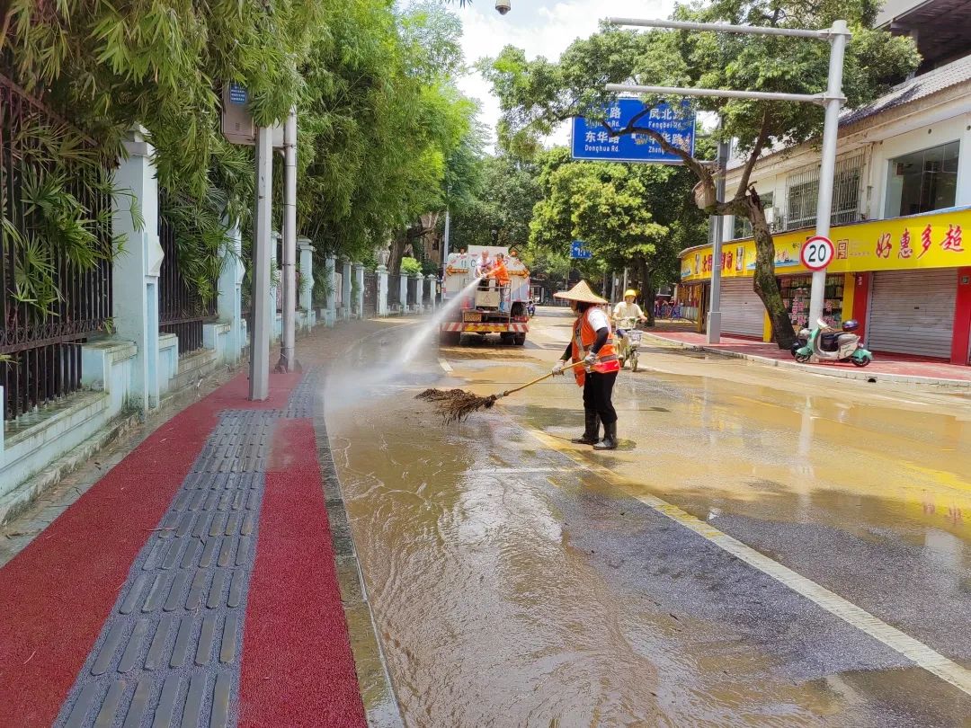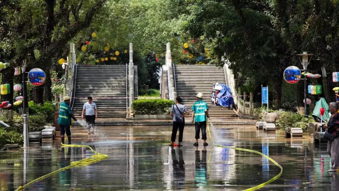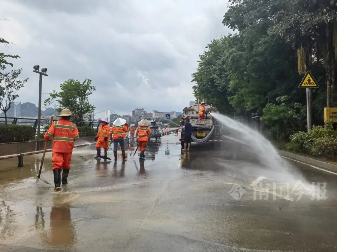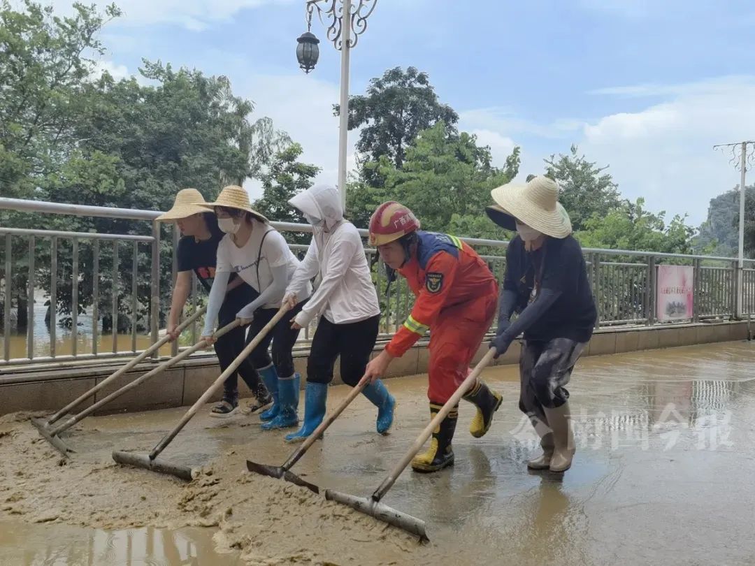 环卫、消防人员正在开展清淤工作。图源:广西云-南国今报