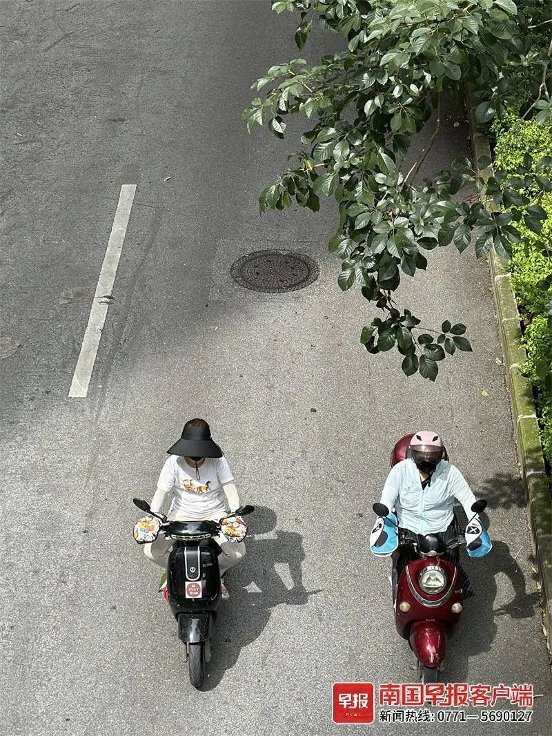 6月20日,南宁市天气转晴。在东葛路一带,市民穿上防晒衣出行。广西云-南国早报记者 邹财麟 摄