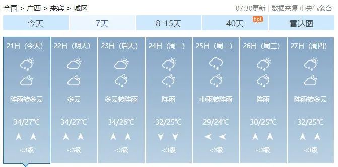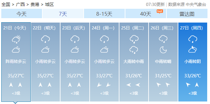 未来几天广西最高气温达35℃
