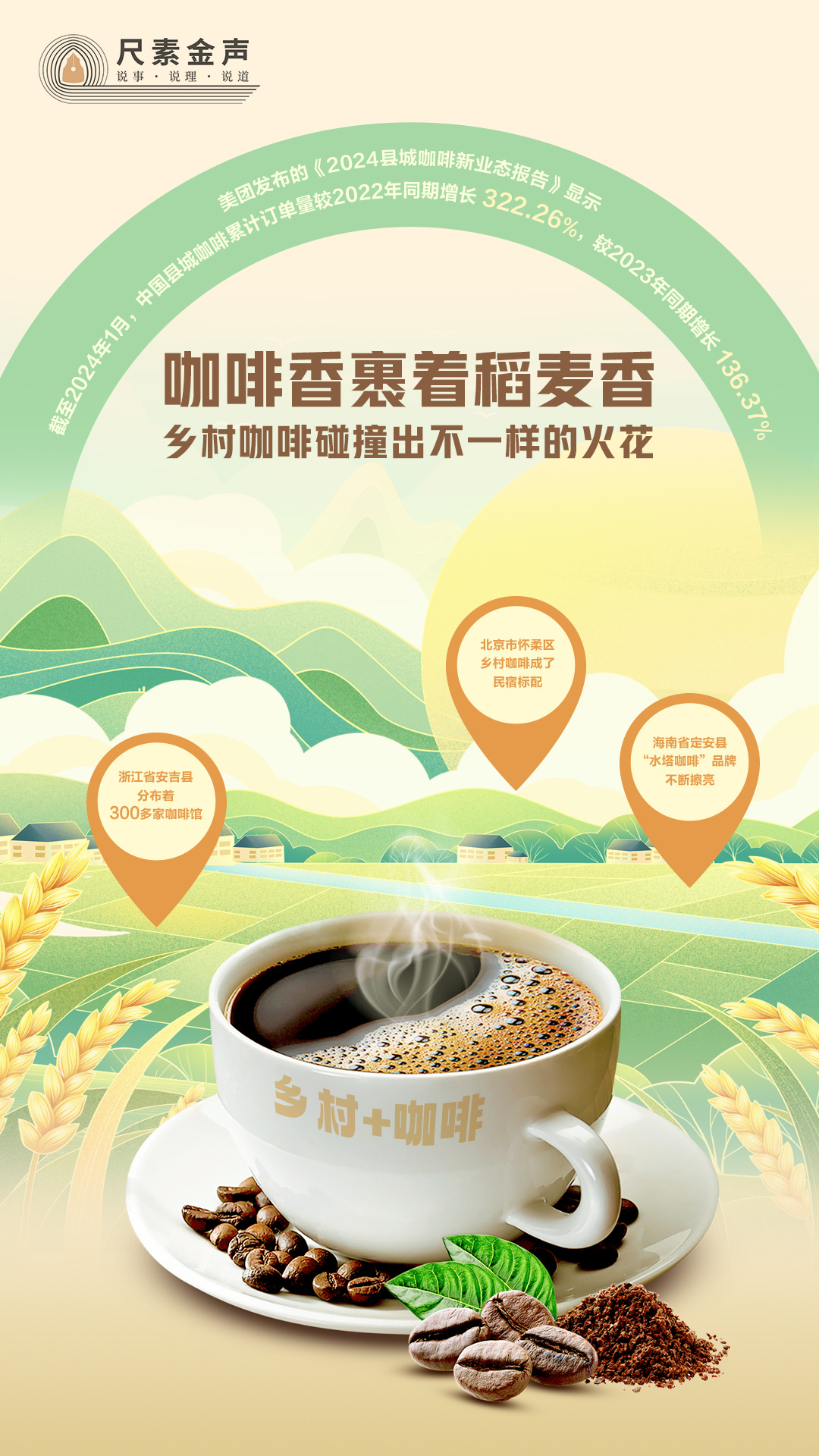 咖啡香裹着稻麦香,吹遍田野。“咖啡+”成为乡村旅游新业态。美团发布的《2024县城咖啡新业态报告》显示,截至2024年1月,中国县城咖啡累计订单量较2022年同期增长322.26%,较2023年同期增长136.37%。乡村咖啡火出圈,背后靠什么?