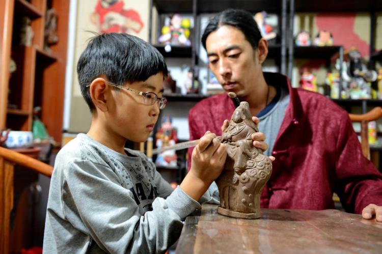 宋长峰很健谈,拉着我聊个不停,讲“三痴斋”的历史,讲他心中的发展规划;宋长峰也很专注,制作泥塑时不说话,只顾飞舞手中的刻刀。儿子在他的影响下,不大的年纪已经是一名制作泥塑的好手。