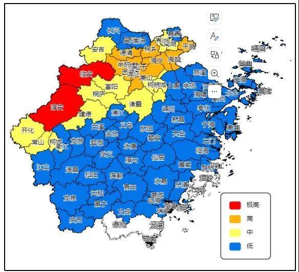 气象部门提醒:由于杭嘉湖、衢州西部和绍兴北部等地持续强降雨,预估上述地区近24小时有27个县(市、区)暴雨灾害中高风险,其中淳安、临安风险极高;需加强防范中小河流洪水、山洪、地质灾害、城乡积涝等次生灾害。