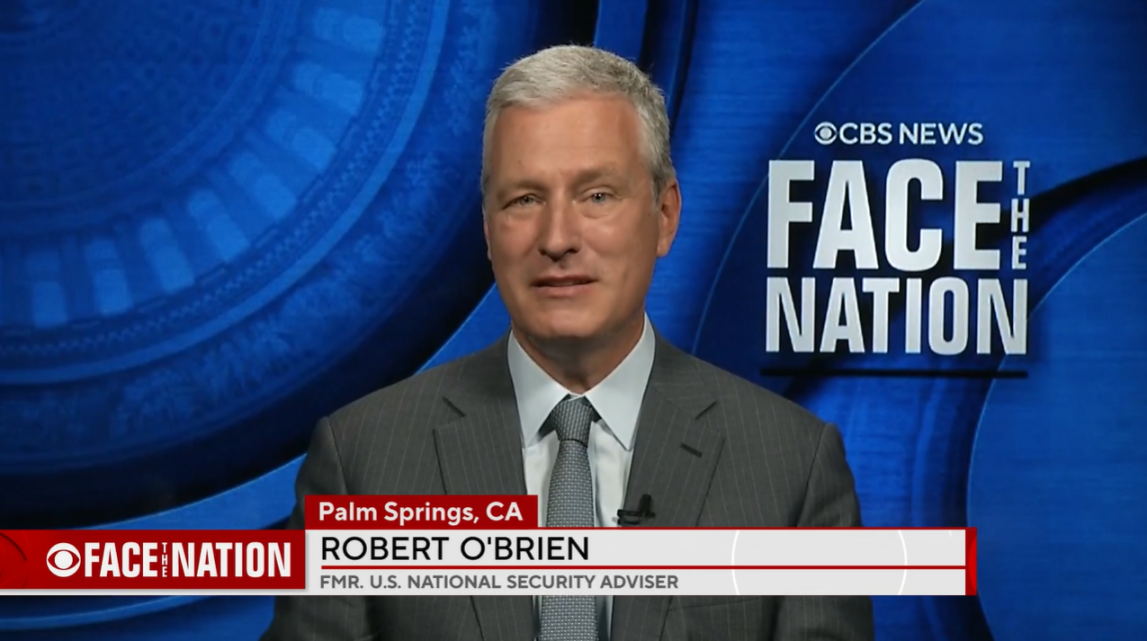 当地时间23日播出的“面向全国”节目中,奥布莱恩提到美国对盟友“严厉的爱” 视频截图 图源:CBS
