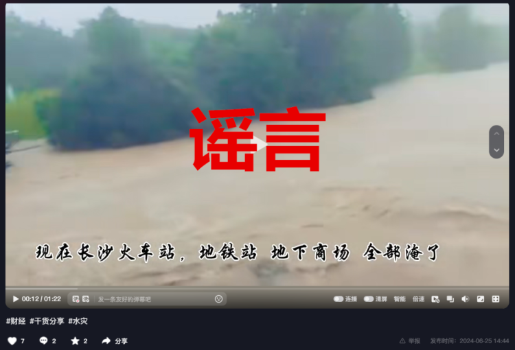 6月25日,网络传播“长沙火车站、地铁站、地下商场全都淹了”的图文及视频。