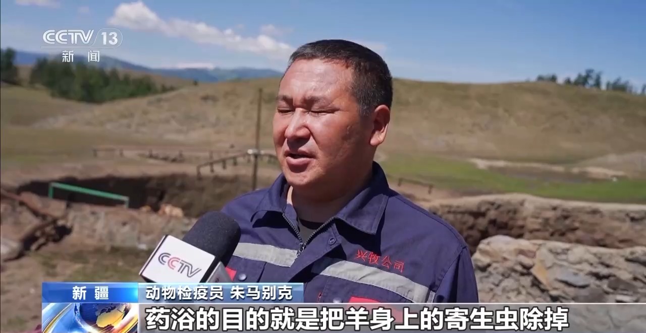 动物检疫员 朱马别克:药浴的目的就是把羊身上的寄生虫(去除),预防疾病,羊能卖得更好,羊长得也更好。