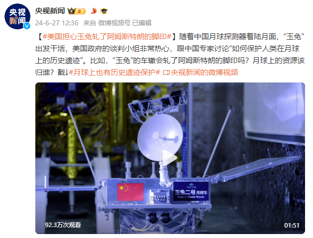 【美国担心玉兔轧了阿姆斯特朗的脚印】随着中国月球探测器着陆月面、“玉兔”出发干活,美国政府的谈判小组非常热心,跟中国专家讨论“如何保护人类在月球上的历史遗迹”。比如,“玉兔”的车辙会轧了阿姆斯特朗的脚印吗?月球上的资源该归谁?戳↓