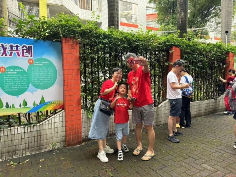在南武中学(岭南画派纪念校区)外,记者看到,不少家庭带着弟弟或妹妹一起来送考。