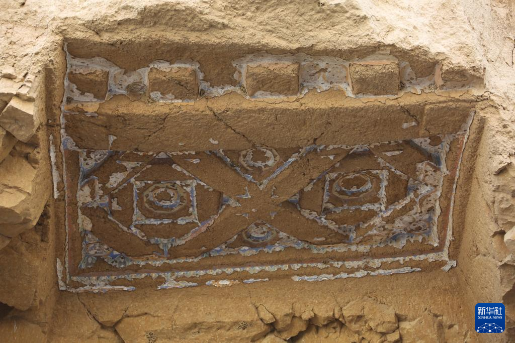 这是6月15日在阿富汗巴米扬省弗拉迪石窟遗址区拍摄的一处石窟顶部结构与残存壁画。新华社发(塞夫拉赫曼·萨菲摄)