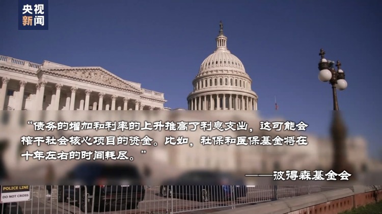 彼得森基金会指出:“不断攀升的财政赤字正让美国财政走上‘一条不可持续的道路’。债务的增加和利率的上升推高了利息支出,这可能会榨干社会核心项目的资金。比如,社保和医保基金将在十年左右的时间耗尽。”