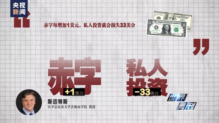 宾夕法尼亚大学沃顿商学院教授斯迈特斯进一步解释说:“赤字每增加1美元,私人投资就会损失33美分,随着时间的推移,这会削弱经济增长和工资。30年内,爆炸性的债务可能会导致美国人的平均工资减少10%。”