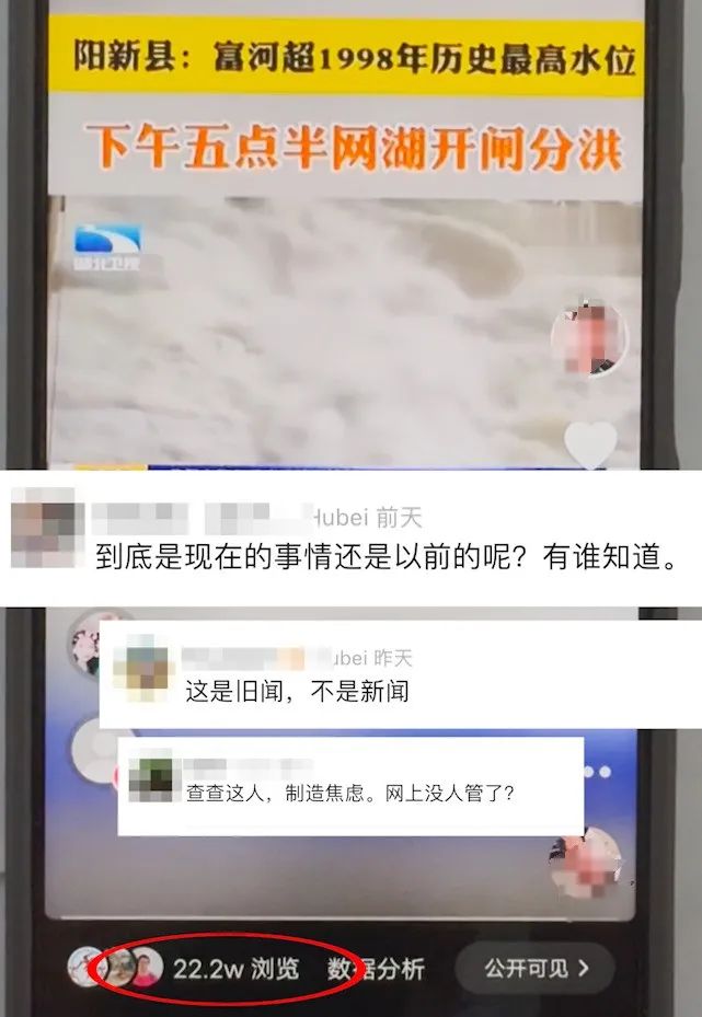 经查:该网民真实身份为华某某(男,29岁,江西瑞昌人),在阳新城区经营一家摩托车修理店。6月29日晚,华某某闲来无事,在刷短视频时,看到了4年前某卫视发布的防汛新闻。联想到近期连续大雨,华某某便对该视频剪辑后在某短视频平台发布,并配以“阳新挺住,加油加油”的文案,意图吸引眼球,博取流量。该视频一经发布立即引起了广大网民的关注和担忧,误导网民认为发生了洪灾险情。该视频发布后浏览量达22.2万,在一定程度上引发了公众恐慌。