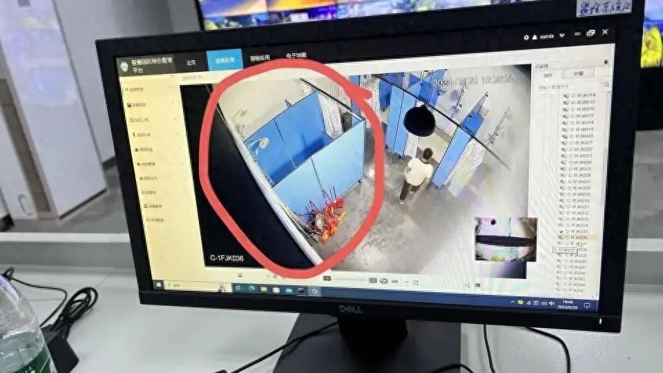6月29日,尹女士在监控室看到的实时监控画面。图源:大风新闻