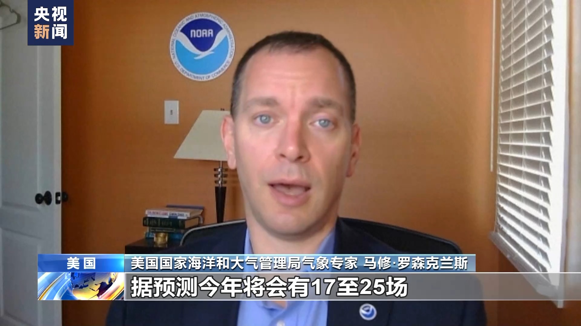 美国国家海洋和大气管理局气象专家 马修·罗森克兰斯:平均而言(每年的飓风季)会有14场风暴被命名,据预测今年将会有17至25场。往年将有7场增强为飓风,但今年预计会有8至13场(成为飓风)。往年大约有3场风暴发展为强飓风,但预测今年会有4到7场。在预测中,所有的指标都高于正常值。