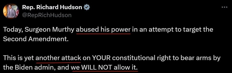 共和党籍众议员理查德·哈德森更是通过社交媒体煽动说:“穆尔蒂滥用权力,试图针对宪法第二修正案。这是拜登政府对你们(美国人)持枪的宪法权利的又一次攻击,我们不会允许这种情况发生。”