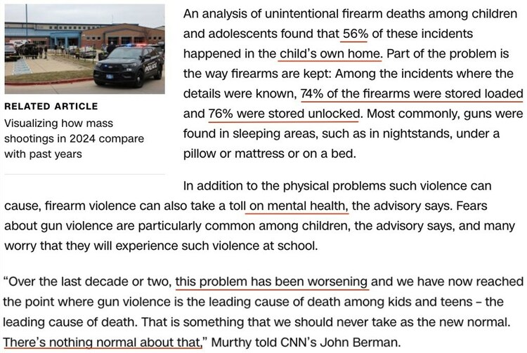 就在几天前,美国公共卫生局局长维韦克·穆尔蒂发布美国首份针对枪支暴力的公共卫生咨询报告,将美国的枪支暴力定性为“一场紧急的公共卫生危机”。