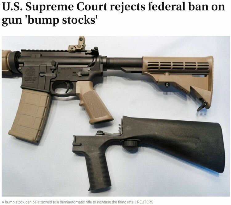 半个多月前,美国联邦最高法院以6比3的投票结果驳回了联邦政府此前针对“撞火枪托”的禁令,称这项禁令不合法。