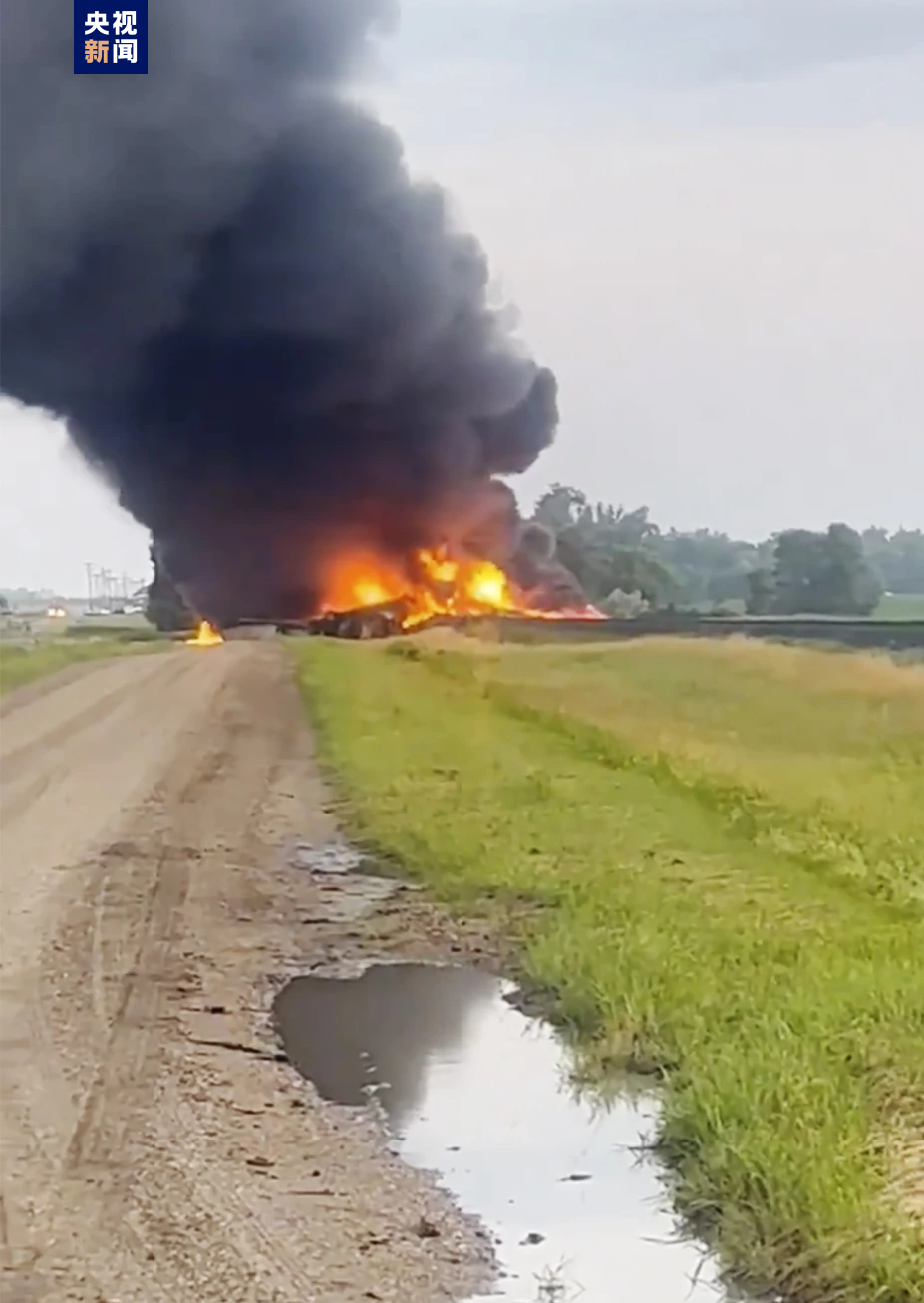 据悉,该列火车装载了液氨、硫和甲醇。目前尚不清楚脱轨原因。(央视记者 许弢)