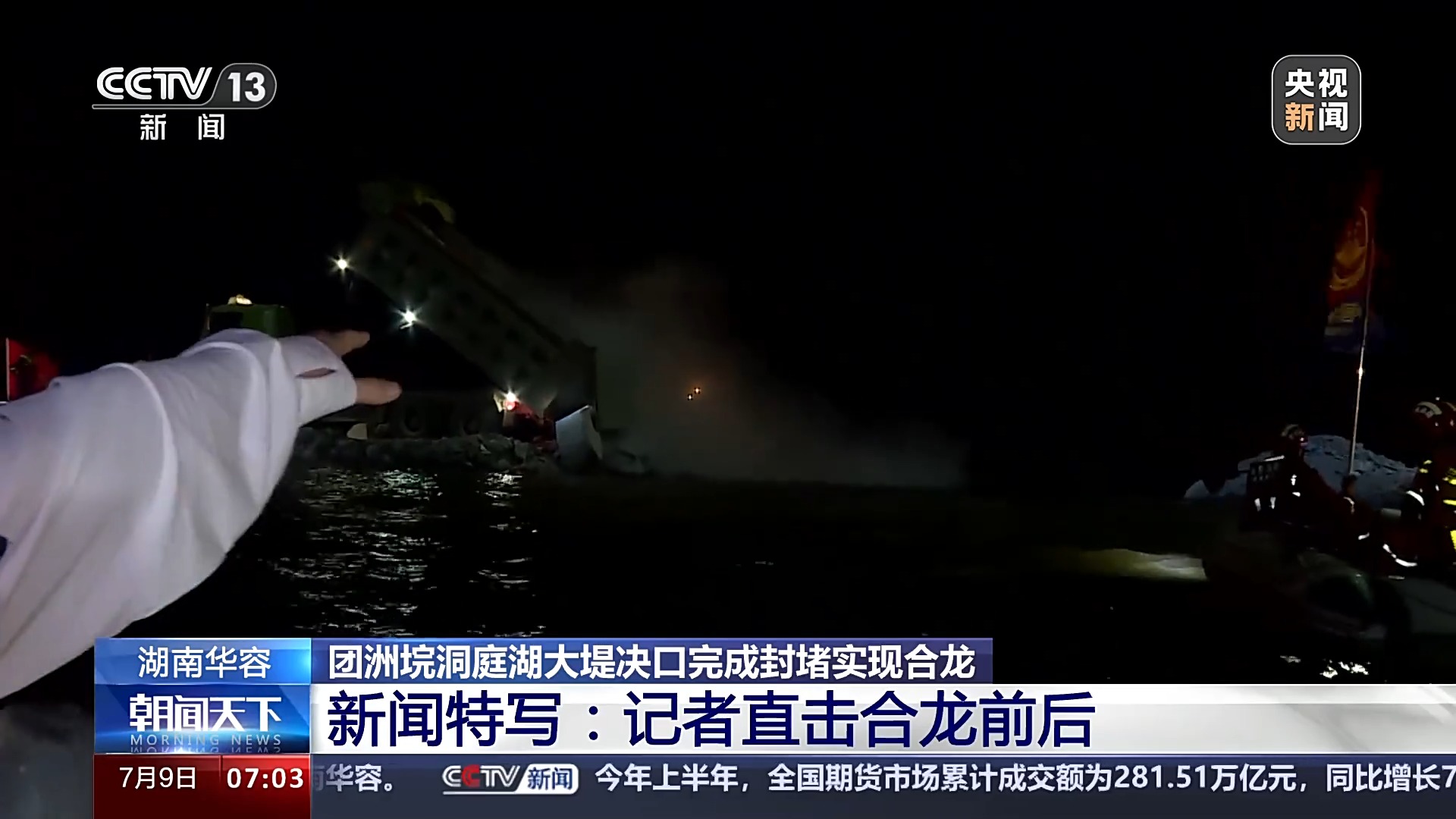 水陆同步,人歇机不停,为的就是争分夺秒尽快完成决口封堵。昨天晚上,总台记者在现场记录了合龙前后的过程。