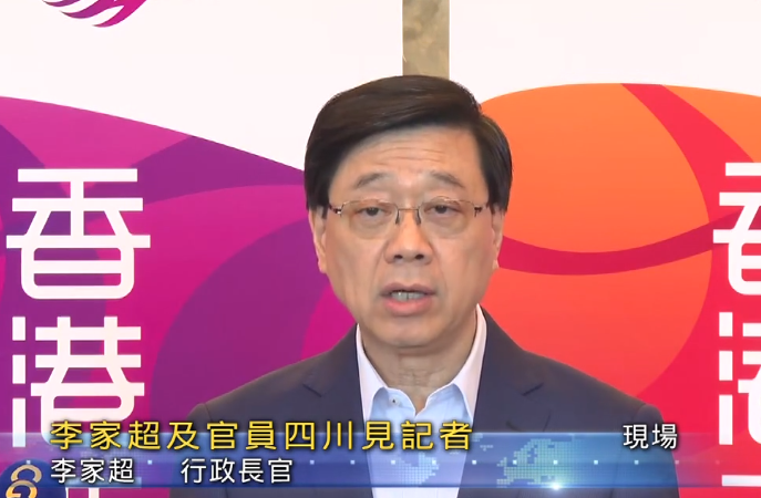 李家超7月9日在四川见记者 图自港媒视频截图