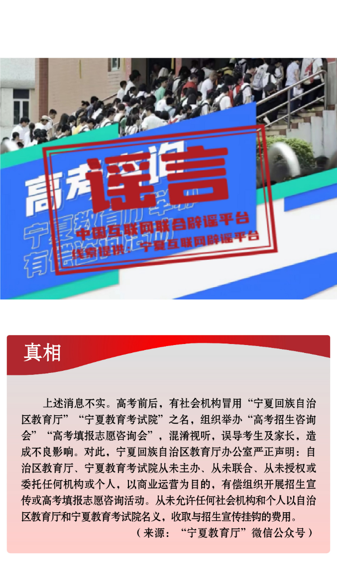涉高招中招类谣言多存诈骗风险,侵害群众利益。