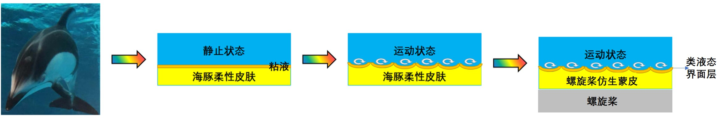 仿生蒙皮,即参照海豚皮的物理和化学特性,通过人工合成方法,制备出的具有类似海豚皮特征的人造材料。
