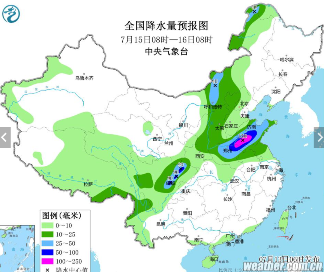 15日夜间到16日白天,全省天气阴,鲁中和鲁南地区有中到大雨局部暴雨或大暴雨并伴有雷电,半岛地区有中雨局部大雨并伴有雷电,其他地区有雷雨或阵雨。南风,潍坊、临沂、日照和半岛地区4~5级阵风6~7级,其他地区3~4级,雷雨地区雷雨时阵风8~10级。最低气温:鲁中山区和半岛地区23℃左右,其他地区25℃左右。最高气温:鲁西北地区33℃左右,鲁中山区和半岛地区27℃左右,其他地区30℃左右。