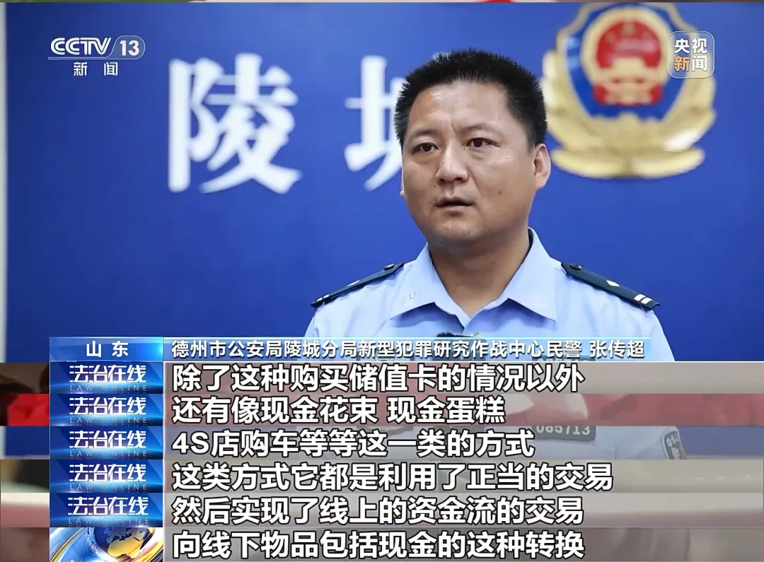将诈骗资金汇入“空壳”公司账户,再以“空壳”公司的名义购买购物卡,最后将购物卡通过“黄牛”套现或者网购黄金等实物的方式,实现“洗钱”的目的。近日,德州市公安局陵城分局破获一起利用超市购物卡“跑分”洗钱案,抓获犯罪嫌疑人6名,查获作案设备若干,涉案金额25万元。7月11日,中央广播电视总台新闻频道《法治在线》栏目对此案进行报道。