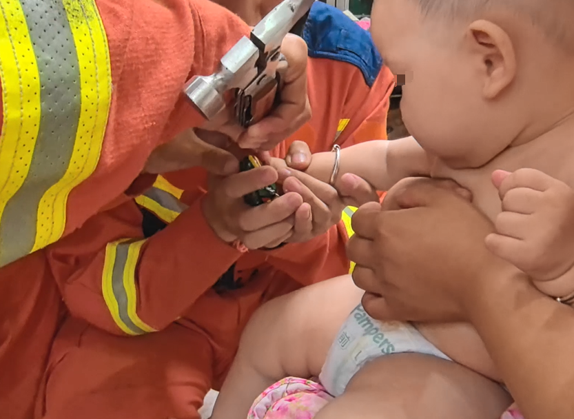 7月10日,内蒙古通辽市经济技术开发区一名6个月婴儿右手大拇指被卡住,急需救援!
