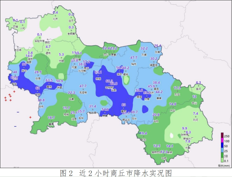 7月16日5时-7时,全市平均降水量26.2毫米,区县平均降水量虞城县47.9毫米、睢阳区42.6毫米、虞城41.1毫米,其中大于25毫米的有9个县(市、区),84个乡镇共91站,其中大于50毫米的有7个县(市、区),30个乡镇共30站,位列前十的分别为:睢县尚屯96.0毫米、睢县后台83.6毫米、虞城县黄冢83.0毫米、虞城县谷熟68.8毫米、虞城县芒种桥66.3毫米、夏邑县中峰65.6毫米、虞城县刘店64.1毫米、宁陵县黄岗63.5毫米、虞城县木兰63.5毫米、虞城县杜集63.2毫米。